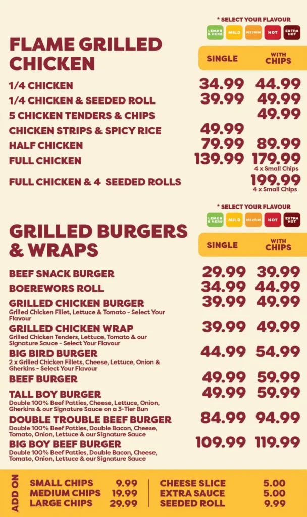 Bite into burgers, chicken, wors rolls, hot chips, pap & relish and more — all grill-to-go, cooked while you wait. Fast, flavourful, and fit for your pocket.